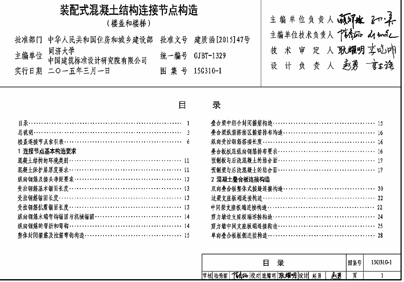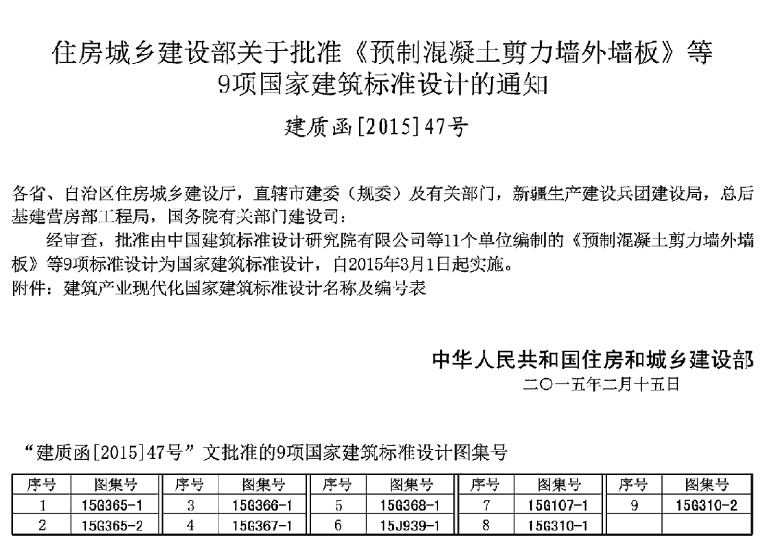 本图集根据住房和城乡建设部建质函[2014]223号“住房城乡建设部关于印发建筑产业现代化国家建筑标准设计专项编制工作计划(第一批)的通知”进行编制。当依据的标准规范进行修订或有新的标准规范出版实施时,本图集与现行工程建设标准不符的内容、限制或淘汰的技术或产品,视为无效。工程技术人员在参考使用时,应注意加以区分,并应对本图集相关内容进行复核后选用。