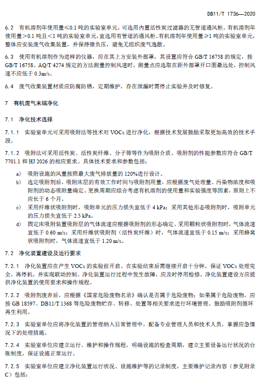 北京市实验室挥发性有机物污染防治技术规范 DB11T1736-2020