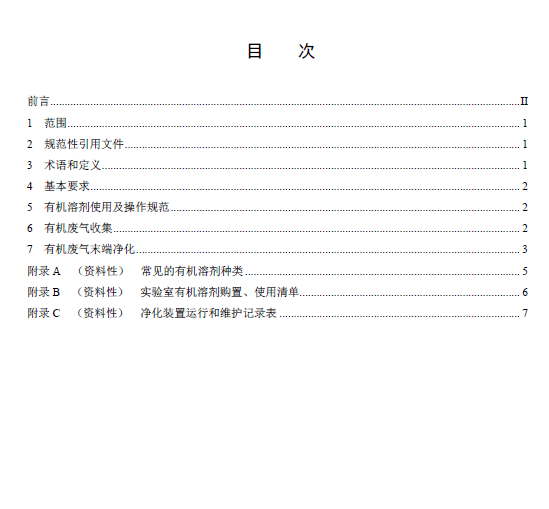 本文件规定了实验室挥发性有机物污染防治的基本要求、有机溶剂使用及操作规范、有机废气收集 及净化等要求。 本文件适用于所有使用有机溶剂的实验室挥发性有机物污染防治的规范管理。