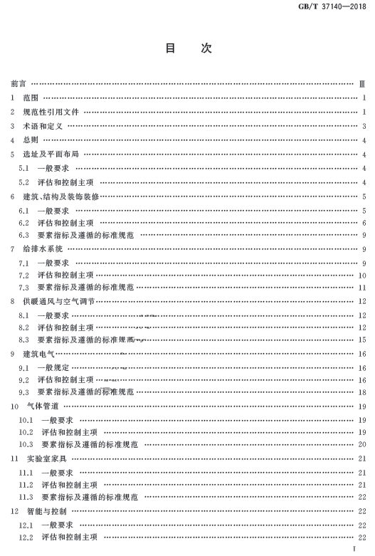 《检验检测实验室技术要求验收规范》(GB/T 37140-2018)规定了检验检测实验室技术要求的验收规范,包括设计与建设验收的总则、选址及平面布局、建筑结构及装饰装修、给排水系统、供暖通风与空气调节、建筑电气、气体管道、实验室家具、智能与控制、安全与防护、节能与环保、设计审查及使用验收等。该标准适用于新建、改建、扩建的检验检测实验室的设计和建设,以及建设方对设计文件的审查和使用验收。该标准不适用于生物安全、动植物检验、净化及医学实验室。