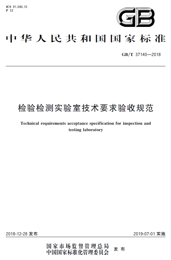 《检验检测实验室技术要求验收规范》(GB/T 37140-2018)是2019年7月1日实施的一项中华人民共和国国家标准,归口于全国实验室仪器及设备标准化技术委员会。